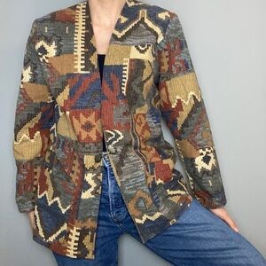 Vintage Aztec Tapestry Bohemian Blazer Jacket