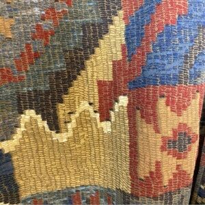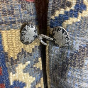 Gorgeous vintage Aztec tapestry bohemian blazer jacket. 100% cotton. Metal buckle clasp. Two roomy hip pockets. Great pre-loved condition. Pair with your favourite jeans and clogs or boots this season.