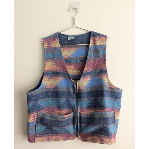 Vintage Aztec zip vest from 'Fission - Reactivewear' - Size XL imo (could also be men's fit) - In Very Good Condition, appears to be pre-loved a few times!