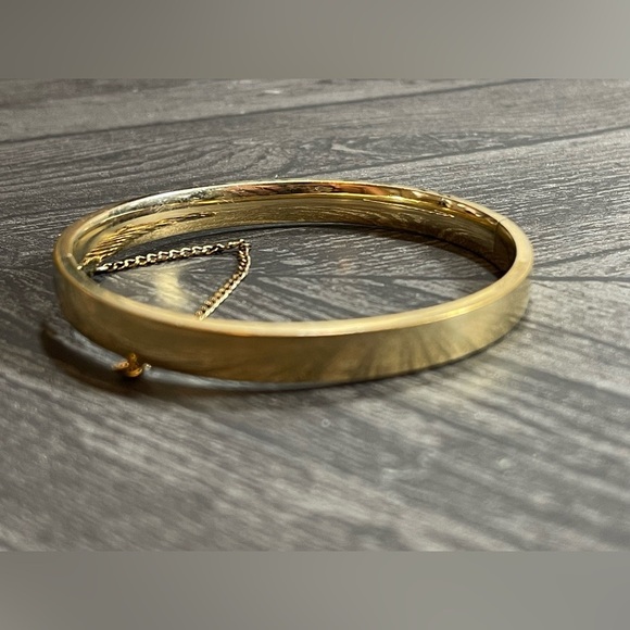Vintage signed B. A. BALLOU & CO. Yellow Gold Filled Hinged Bracelet W/Safety Chain