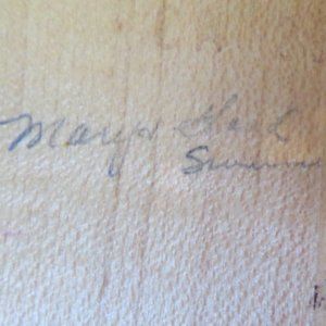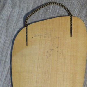 Measures 9.5" long, 5" wide. Signed on back. With cord for hanging on wall.