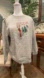 Charming vintage 90s Basic Editions sweatshirt in soft heather gray fleece, featuring a cozy embroidered winter woodland scene — perched birds, pine trees, and a blue birdhouse with red and gold accents. Classic crew neckline and gentle ribbed cuffs and hem. Plush fleece interior for warmth and comfort.