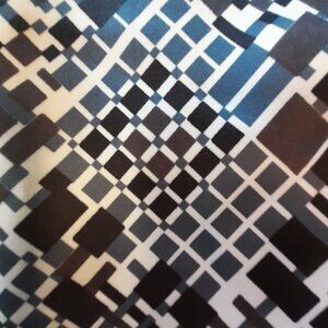Pre-owned. In great condition. Vintage BCBG MaxAzria miniskirt in size 10. Dark grey, steel blue, black and white abstract pattern. The skirt is lined. The zipper is at the back and there are 2 pockets at the front. The skirt is a size ten. The length is 15.5 inches and the waistband is 31 inches. Microfiber.