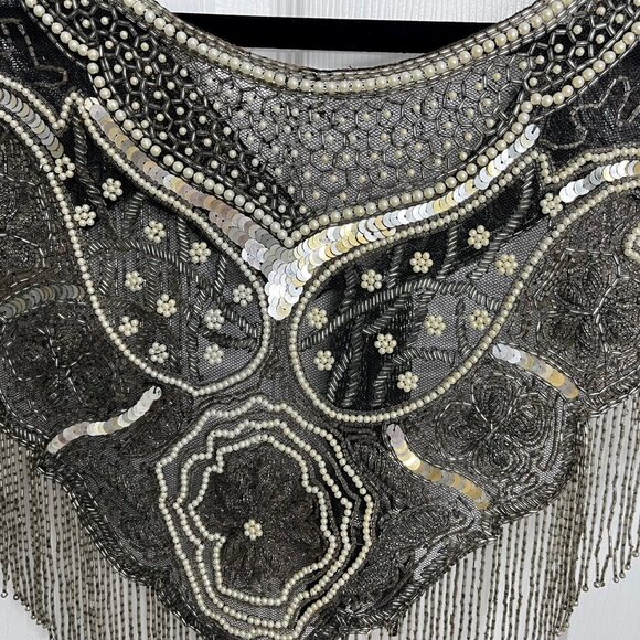 Vintage BEADED FRINGED SHAWL, Capelet with Scoop Neck, V Back, Costume Wedding