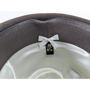 Condition: Overall small marks of age and use, including some sloppy threads around the grosgrain hat around the crown. The inside with small marks but overall quite tidy.