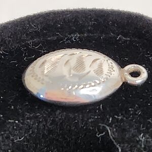 Vintage 1950s Sterling Silver Oval Charm with classically Etched Halo Wave Pattern (looks like Ship Sails), by BIRKS.