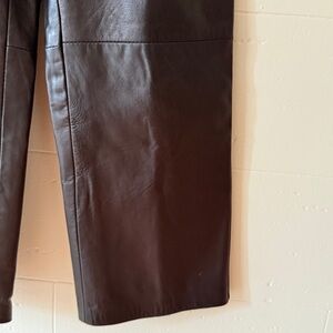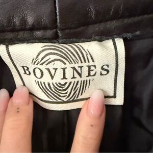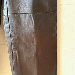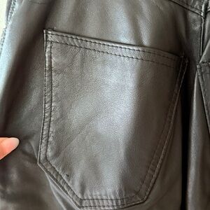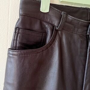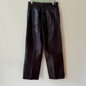 These BOVINES genuine leather pants are the real deal! They're sleek, structured, and unapologetically cool. Made from buttery-soft leather, these pants give off major '90s supermodel energy. They feature a high waist, straight leg and leg seam, and that perfect vintage fit that’s getting harder and harder to find. Fully lined for comfort. Style with a slouchy tee or a sharp blazer and go out into the world to break some hearts. In excellent pre-owned condition.
