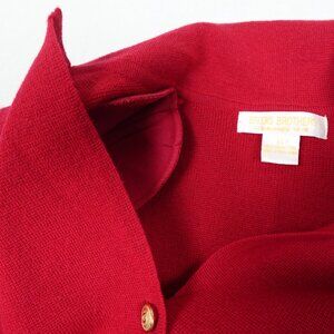 100% merino wool, shoulder pads. Excellent condition, deep red colour with gold buttons, no stains, no rips or holes, very little wear. Size XS - see measurements in photos.