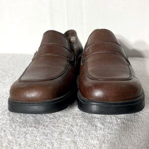 Vintage B.U.M. Equipment Brown Leather Rounded Square Toe Chunky Heel Loafer 6.5