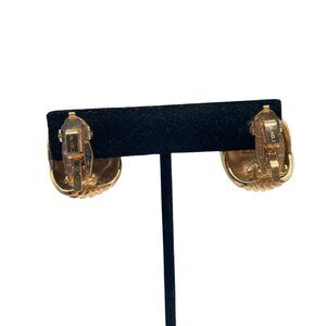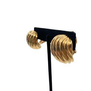 This set of clip on earrings by Butler are part of the 5th Avenue Collection and are a rare find! Each large earring is set in gold tone and are ribbed.
