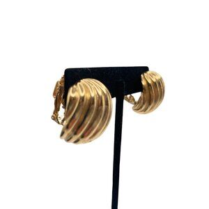 Vintage BUTLER 5th Ave Collection Ribbed Gold Tone Clip on Earrings Signed