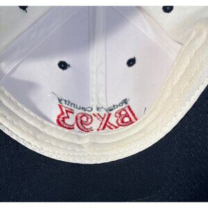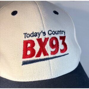 This vintage baseball cap features the BX93 Today's Country logo, offering a unique style for fans or collectors. Adjustable strap ensures a comfortable fit.