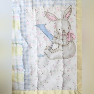 Vintage Baby Blanket Crib Quilt Bunny, Bear and Puppy Handmade Embroided