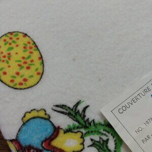 This vintage baby blanket has never been used and is in it's original packaging. However it does have some damage. The edges of the fabric trim have shattered and are torn. It will tear more and should be replaced. The actual blanket is fine and quite sturdy.