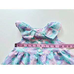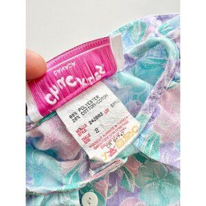 Vintage Baby Girl CHUCKLES Blue Purple Floral Poly Cotton Prairie Dress, Size 2