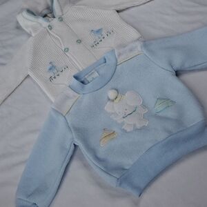 White hoody is marked 1 year however vintage sizing fits smaller compared to the 0-3 month sweater (last pic)