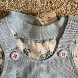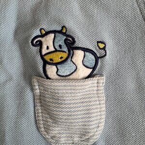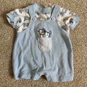 Vintage Baby One Piece Short Romper Light Blue Cows Size 6 months