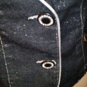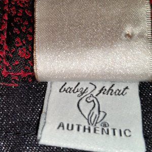 Vintage Baby Phat sparkly dark denm jacket With emblem on waist front. Silver trim with rhinestoned buttons. Size large NWOT
