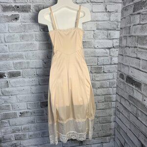 Vintage Babydoll Midi Slip Dress Satin Lace Trim Empire Waist Lingerie Nightgown