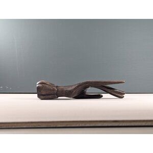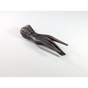 A very elegant hand carved wooden hand, perfect for displaying rings on a table top or, you could mount it to a wall and hang necklaces from it. Possibly made in Bali, but unmarked for a maker. In great shape with a touch of lightening to the wood, no chips or breaks noted.