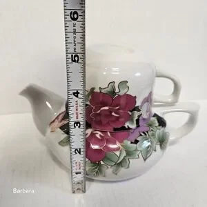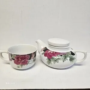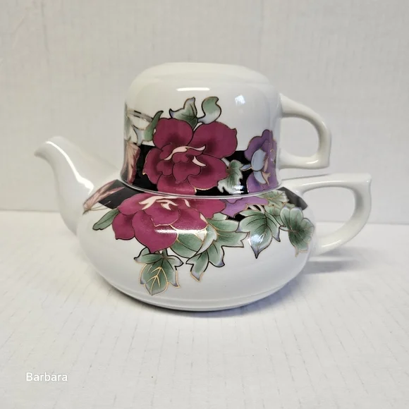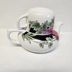 Vintage Bali Collection Stacking Tea-for-One Set. Hand-painted. 70s. Includes teapot, cup and warmer/teabag cover.