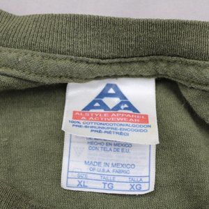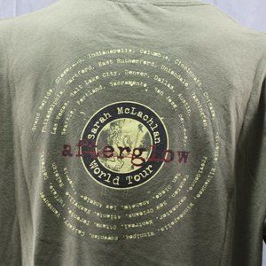 Up for sale is a vintage band shirt. It is a Sarah McLachlan Afterglow tour shirt. It has an olive green base colour. The front of the shirt has an abstract graphic with a bird on the bottom and afterglow across the top. The back of the shirt has a spiral graphic which has the locations of the tour on it. What a great band shirt do not miss out on it.