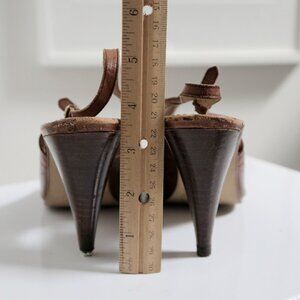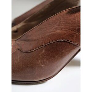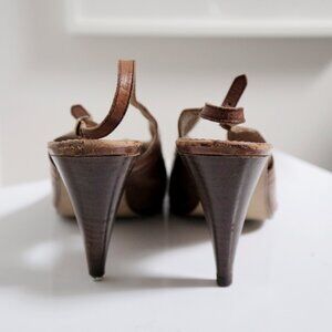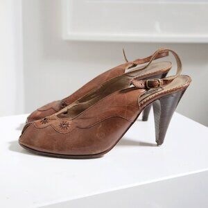 Vintage Bandolino Italy Brown Leather Peep Toe Floral Sandals