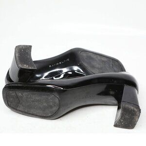 Vintage Bandolino Patent Leather Loafer Pumps Square Toe Chunky Heel Black Gloss