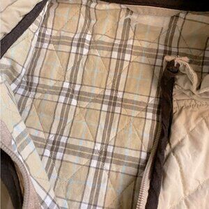 The front and one on the back, they’re from bug spray. If you know how to remove those, my loss is your gain. Other than that it’s in great condition. Minor Wash wear. Full front zip. Tags are unreadable, size L chosen based on fit and measurements in pics.
