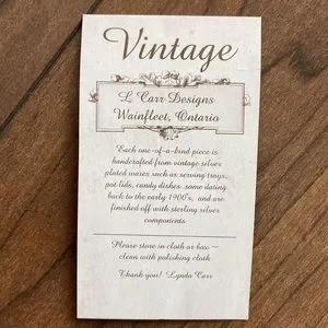 “Each one-of-a-kind piece is handcrafted from vintage silver plates wares such as serving trays, pot lids, candy dishes…some dating back to the early 1900’s, and are finished off with sterling silver components”