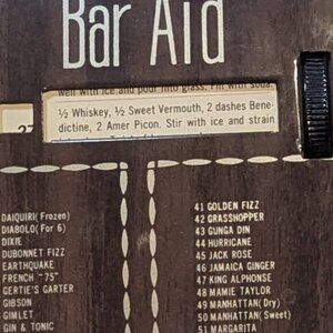 Add retro charm to your home bar with this vintage Bar Aid drink recipe guide. Features a rotating dial to reveal classic cocktail recipes like Manhattans, Martinis, and more. A perfect collectible for mid-century decor lovers and mixology enthusiasts. Great conversation piece and functional bar tool!