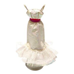 Vintage Crystal Barbie Doll Clothing Dress White Taffeta Circa 1983