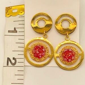 Vintage Barbiecore Gold and Pink-Red Earrings