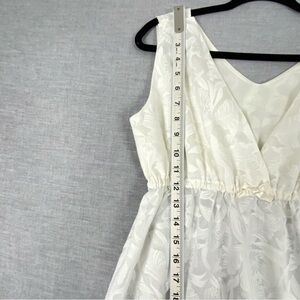Vintage Bard's Canada Evening Gown and Robe set. Women's tag size small. 50% cotton, 50% polyester. White sheer with floral motif. Gown is sleeveless V-neck with elastic waist. Robe has a single snap closure with satin drawstring and ruffle trim. Robe has pockets. Inside top is lined with cream colour solid fabric. Full length from shoulder seam to hem is 40 inches.