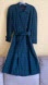 Vintage Barezzi 100% Virgin Wool Teal Long Structured Trench Coat with shoulder pads, double-breasted button closure, fully lined, heavy warm wool, and notch lapels.