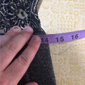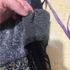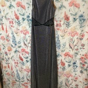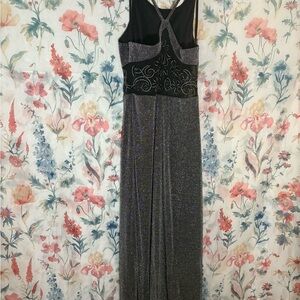 Dazzle in this Bari Jay maxi dress. Features a shimmering black and silver design. Ideal for special occasions. Should fit sizes 12-14.