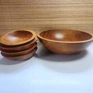Vintage Baribo Made Wooden Salad Serving Bowl Set 5 Piece Mid Century Farmhouse