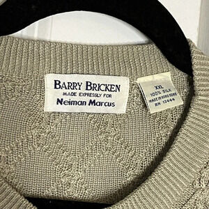 Vintage Barry Bricken for Neiman Marcus 100% Silk Tan Fine Knit Grandpa Sweater