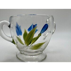 Vintage Bartlett Collins Sugar Bowl Blue Tulips Flowers Gay Fad 50s Vintage