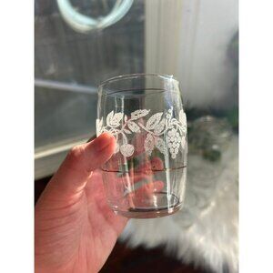 Vintage Bartlett Collins juice carafe pitcher 6 glasses creamer and sugar bowl frosted fruit gold strip grapes drinks