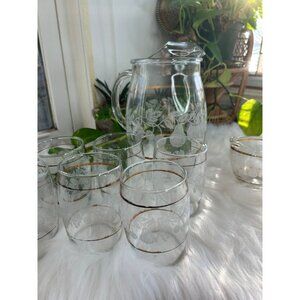 Vintage Bartlett Collins juice carafe pitcher 6 glasses creamer and sugar