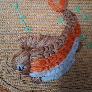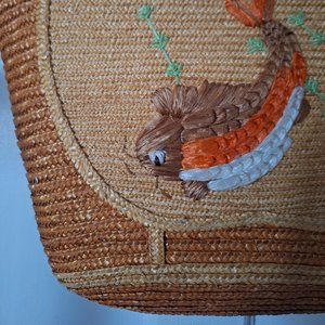 Cute summer basket bag. Vintage but in a good condition. Carp fish embroidery on the front. Interior lined with a waterproof red material.