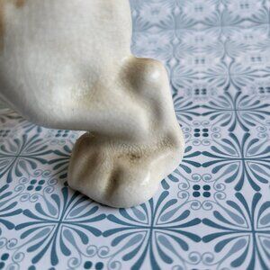 Hand-Painted- as seen on the dog's spot - paint dripping and other painting mistakes make this a One-of-a-Kind piece! Decent condition overall with no chips or cracks. Crazing is evident- see photos. Paint wearing off nose.