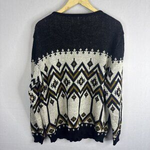 Vintage Bavarian Geometric Knit Cardigan Sweater Men M Crest Buttons Icelandic