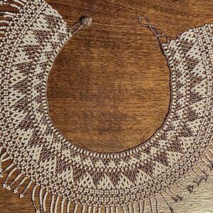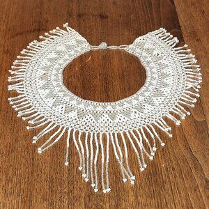 Vintage Beaded Bib Necklace Faux Collar Ornate Necklace