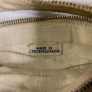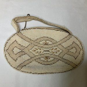 This a gorgeous vintage 1920s beaded handbag, made in Czechoslovakia. The beads are white, cream and beige. Condition: a few beads are missing near the handle.