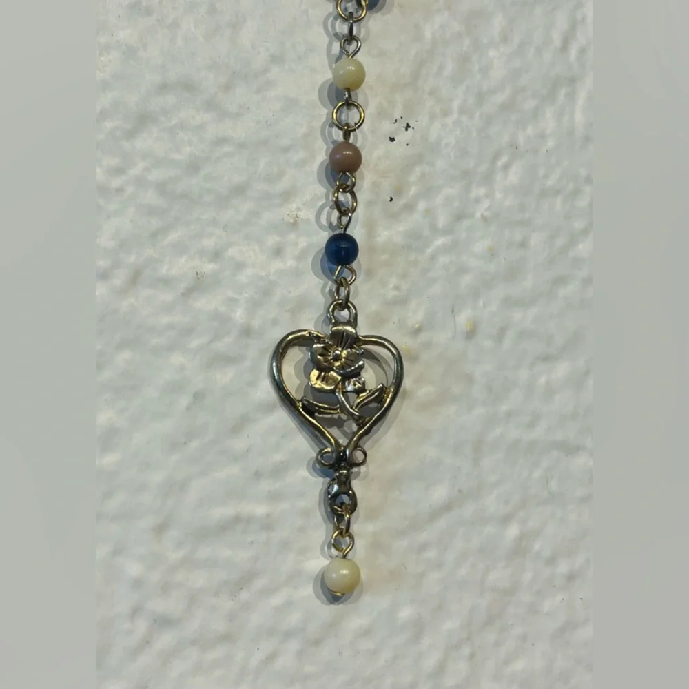 Vintage Beaded Necklace with Heart Shaped Drop Pendant