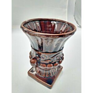 Vintage Beauceware Quebec Canada Glazed Clay Footed Urn Vase 5 7/8" Tall