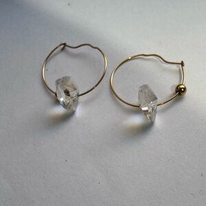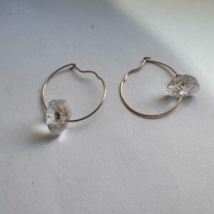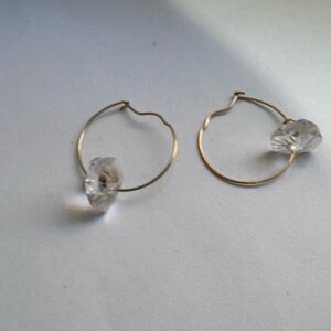✨Vintage Beautiful Delicate Gold Hoop Earrings with Heart Crystal and Gold Bead✨