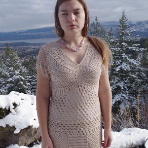 Vintage beautiful machine crochet skirt and blouse ,by Feelings .The size is medium,100% rayon. This style is very big in Brazil.